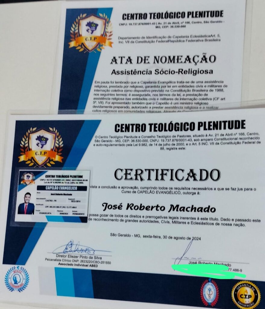 - Credenciamento: Após a conclusão do curso, o capelão recebe uma credencial que o reconhece como qualificado para atuar. Essa credencial, muitas vezes emitida por instituições como a FAETEO ou o Conselho Federal de Capelania, é válida em todo o Brasil e, em alguns casos, em mais de 110 países, conforme o decreto internacional da Convenção de Haia.