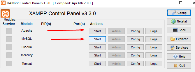 net start mysql2. Teste a conexão via terminal/linha de comando